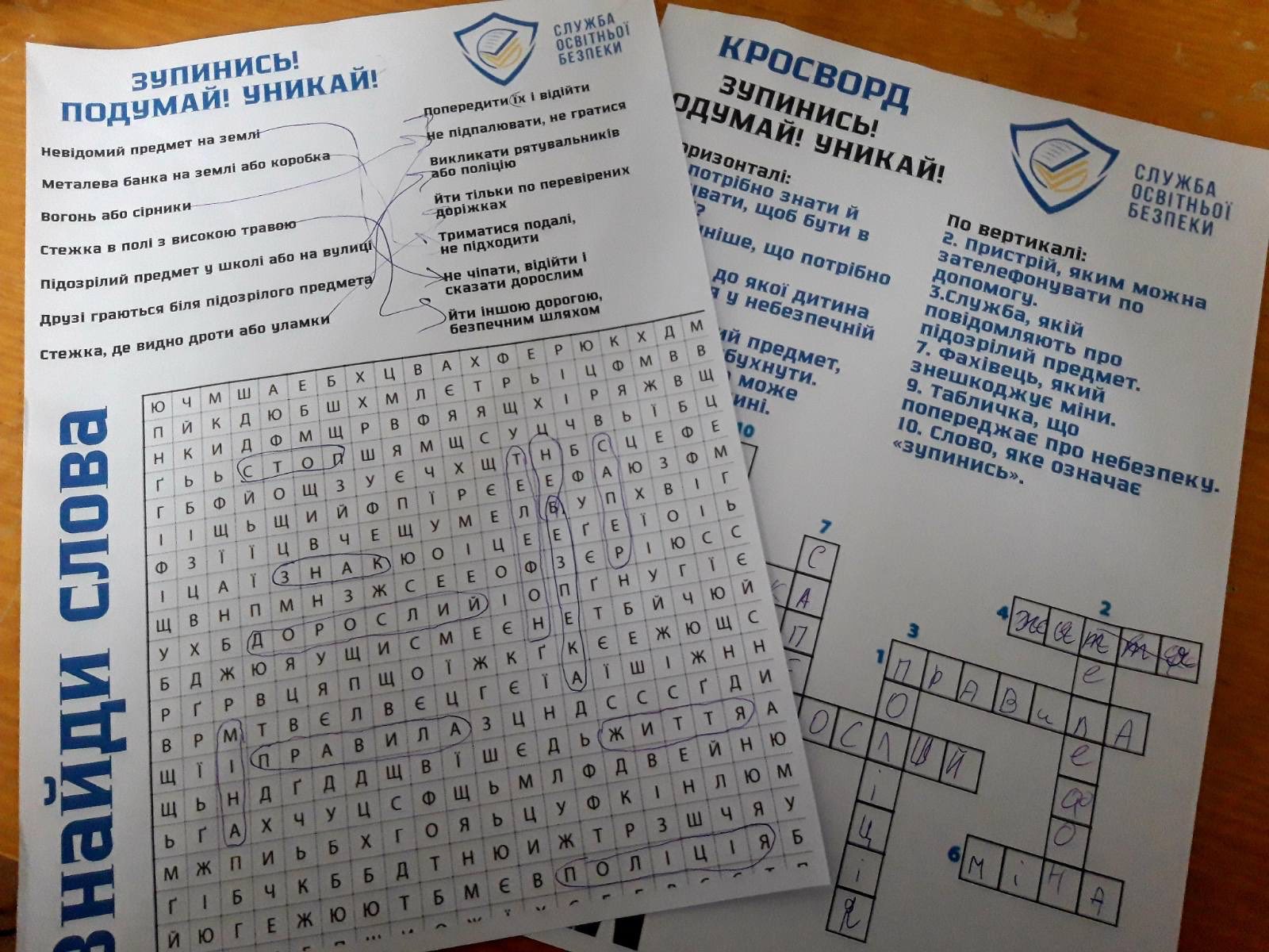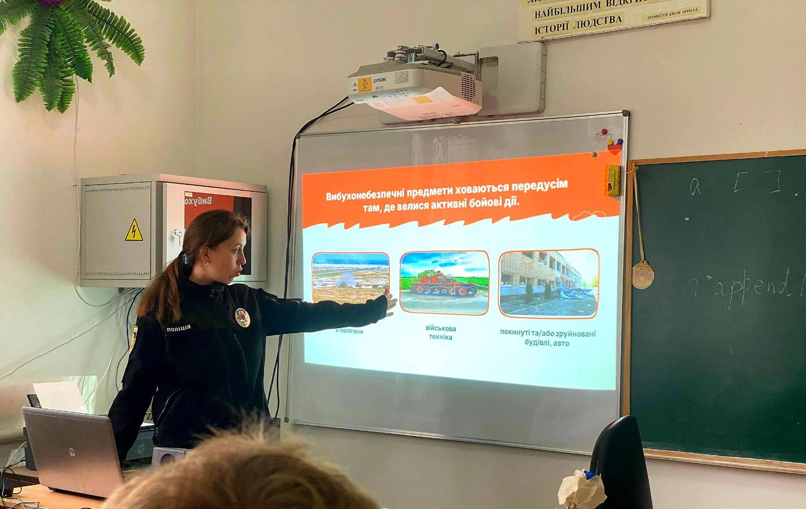 Напередодні дня Мінної безпеки, який відзначається 4 квітня, інспектором сектору СОБ старшим лейтенантом поліції Христиною Мурин були проведені інтерактивні заняття із учнями 7-А та 8 класів. Діти дізнались про види вибухонебезпечних пристроїв, їх можливе місцезнаходження, а також ознайомились із правилами поведінки під час виявлення вибухонебезпечних пристроїв.